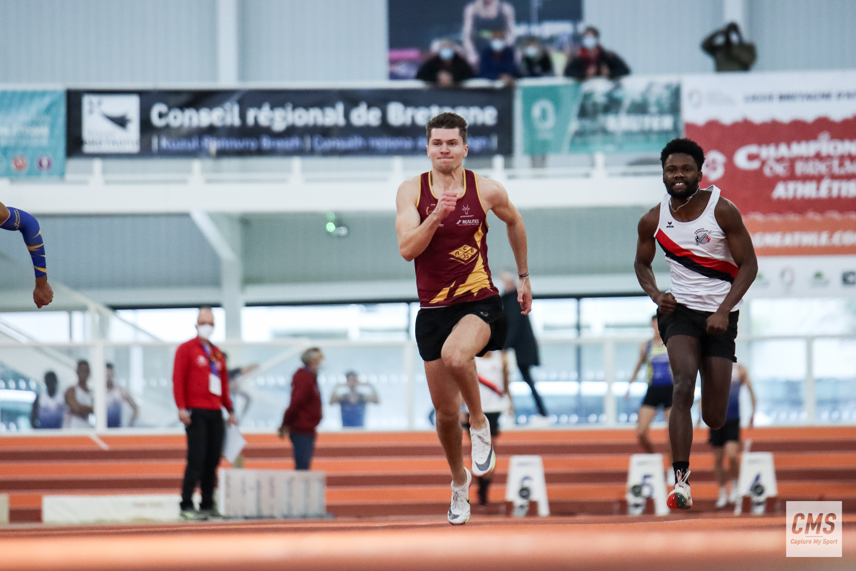 Je ne sais pas... Je me sens pas mal, mais pas super en forme non plus avec beaucoup de pépins physiques. Aux départementaux, j’ai fait mon meilleur chrono de la saison (pour l’instant) en série avec 7"04. Malheureusement j'ai craqué physiquement en finale. Sinon les Bretagne, je n'étais vraiment pas dans un bon jour, j’ai tout raté techniquement (7"11 en série, 7"06 en finale). J'ai quand même fini avec la médaille d’argent, petit point positif. Il me reste encore les interrégionaux pour au moins aller chercher les moins de 7" et finir la saison hivernale avec une satisfaction.