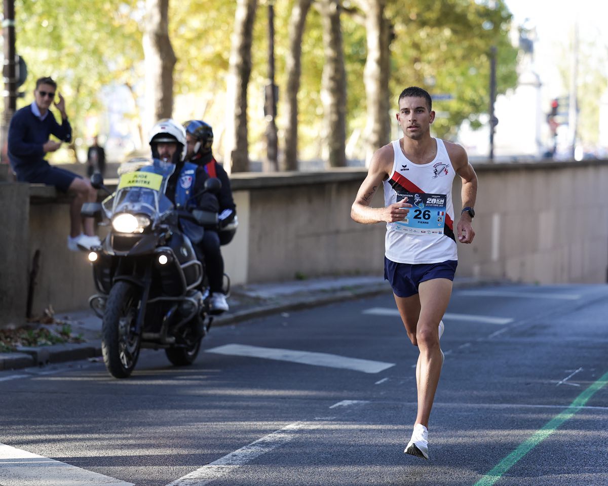 Nous ne sommes qu’en octobre et Pierre Couzinier a déjà placé la barre très haut en termes de performances sur ce début de saison. Auteur d’un chrono de 28’46 sur 10km à Brasov (Roumanie) le 25 septembre, le demi-fondeur rennais a enchaîné deux semaines plus tard avec une performance de niveau IB au 20km de Paris qu’il a bouclé en 58’37. “A Brasov l’objectif était de faire un gros chrono proche des 28’30 sur un parcours roulant. L’objectif a été rempli malgré un petit manque de densité dans mes allures. A Paris, je visais sous l’heure d’effort. J’ai bien maîtrisé ma course, sans partir trop vite avec le groupe de tête”. Cette course bien construite lui offrira le luxe de battre au sprint l’ex-champion d’Europe de 10.000m Morhad Amdouni !